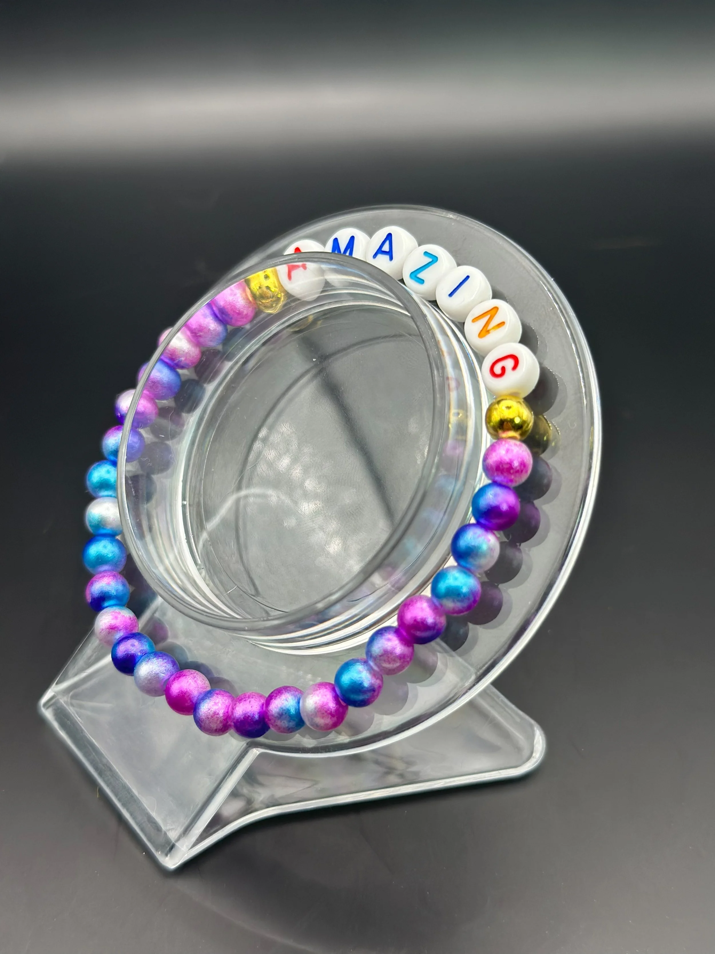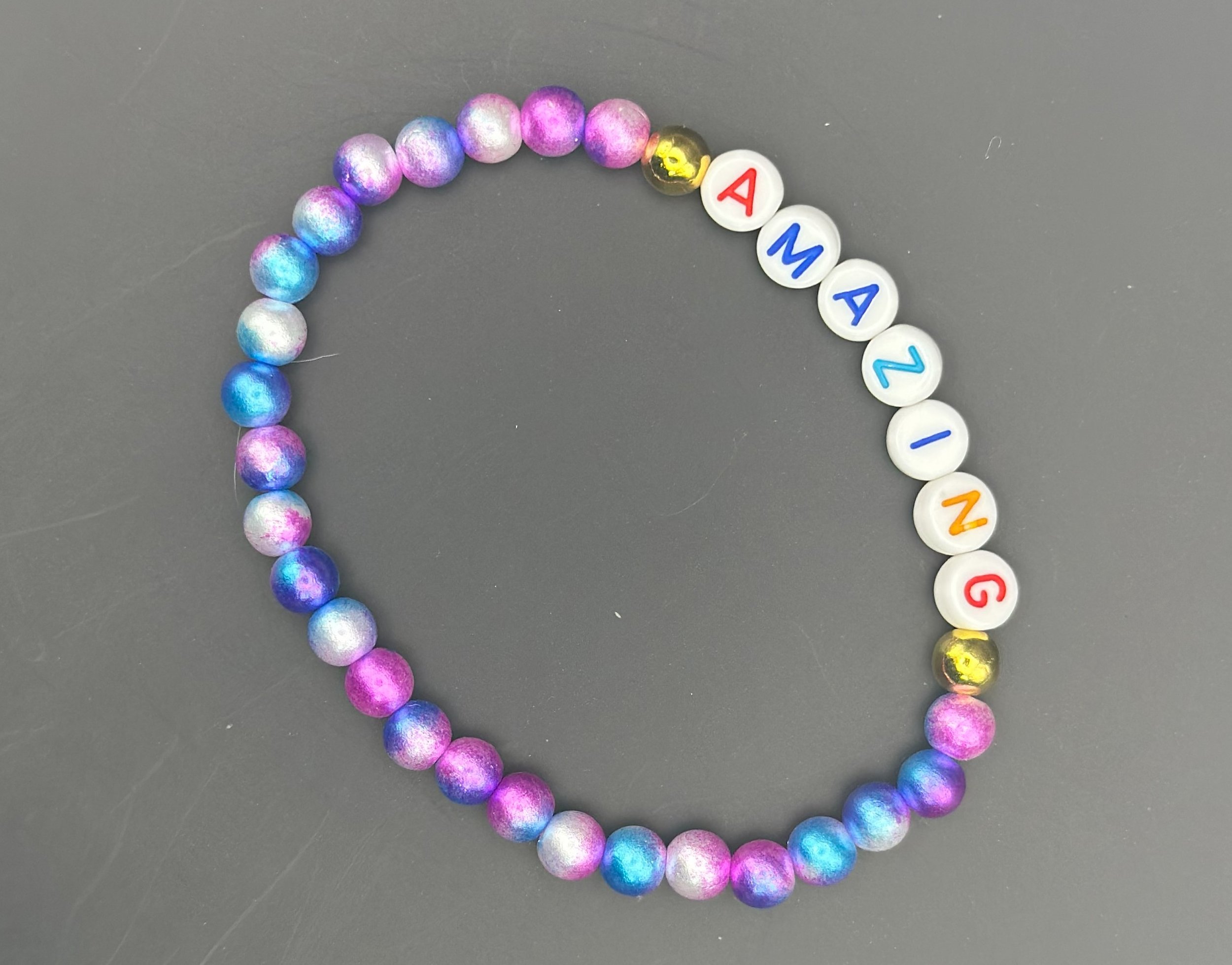 Shop › Elastic stretch bracelet - 'Amazing' friendship bracelet Image 1 of 5 Image 2 of 5 Image 3 of 5 Image 4 of 5 Image 5 of 5 Elastic stretch bracelet - 'Amazing' friendship bracelet $10.00 7” circumference“Amazing” friendship bracelet made from plastic and acrylic beads with fixtures Purchase Added! 7” circumference“Amazing” friendship bracelet made from plastic and acrylic beads with fixtures Reviews Reviewer Name Review Date Star Rating Description Posted on Etsy Product Show More