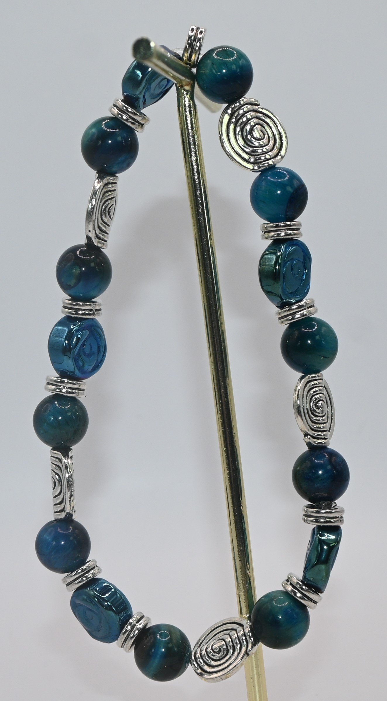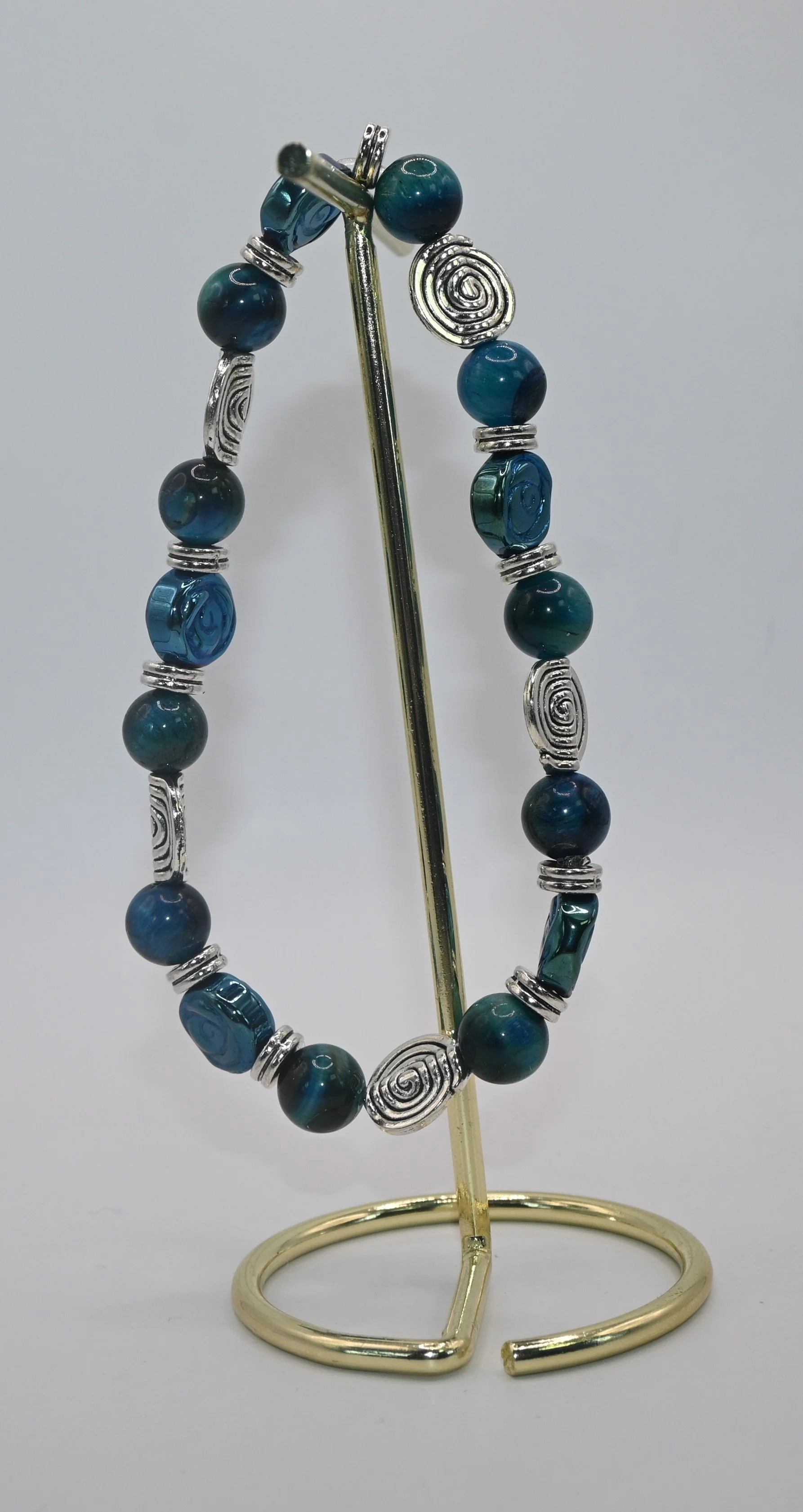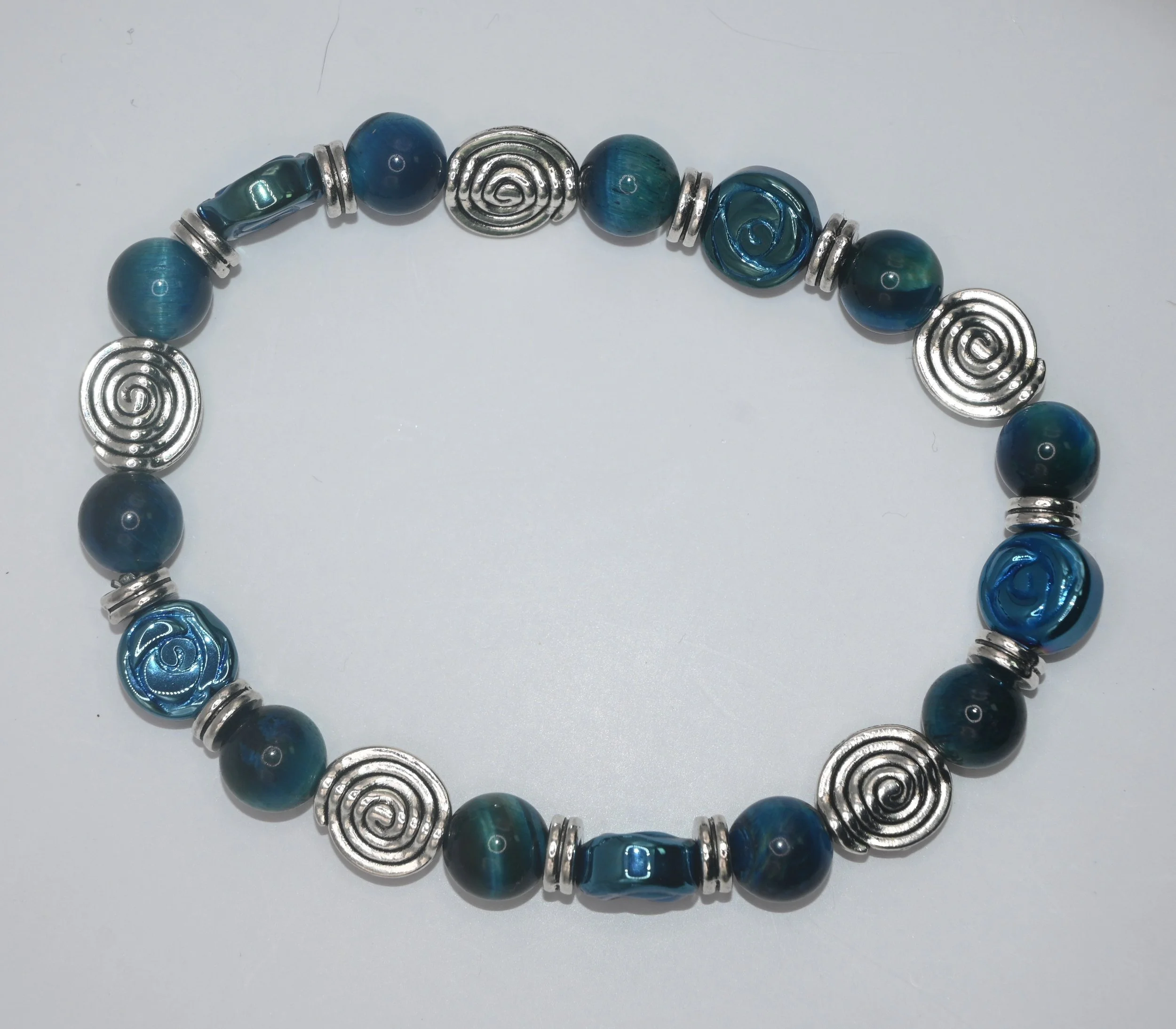 Materials – natural stone blue tiger eye 6mm beads with glass bead spacers and fixtures