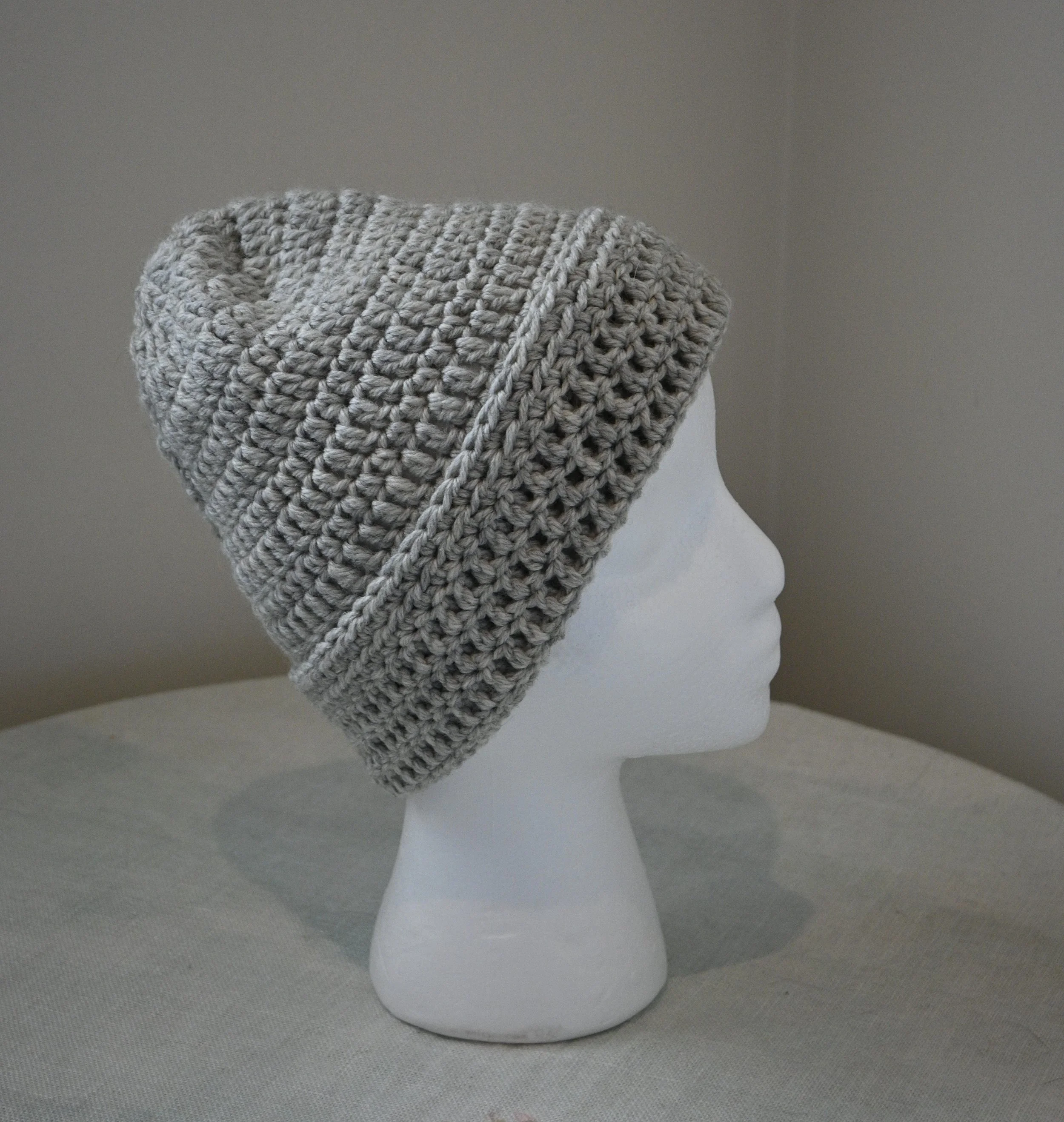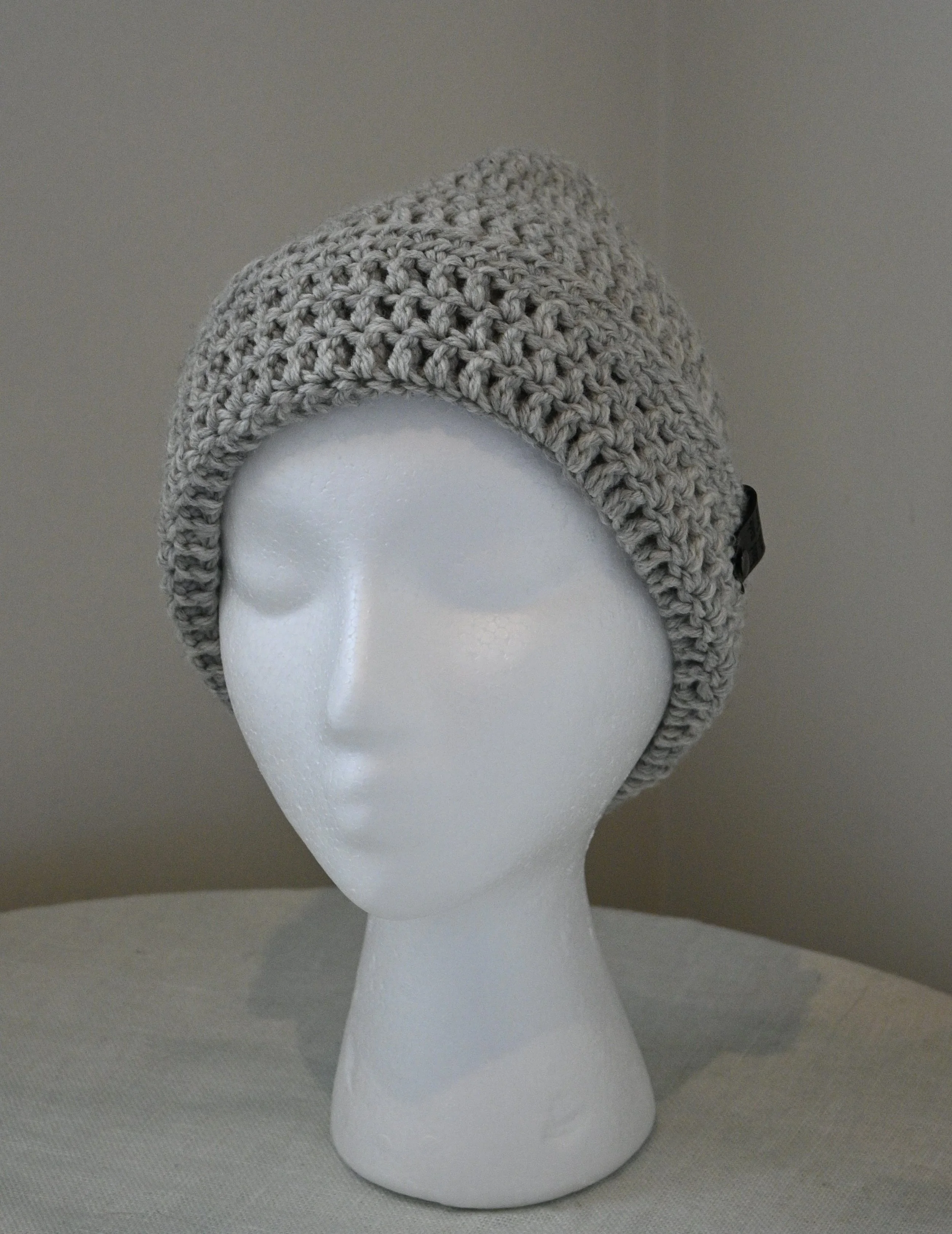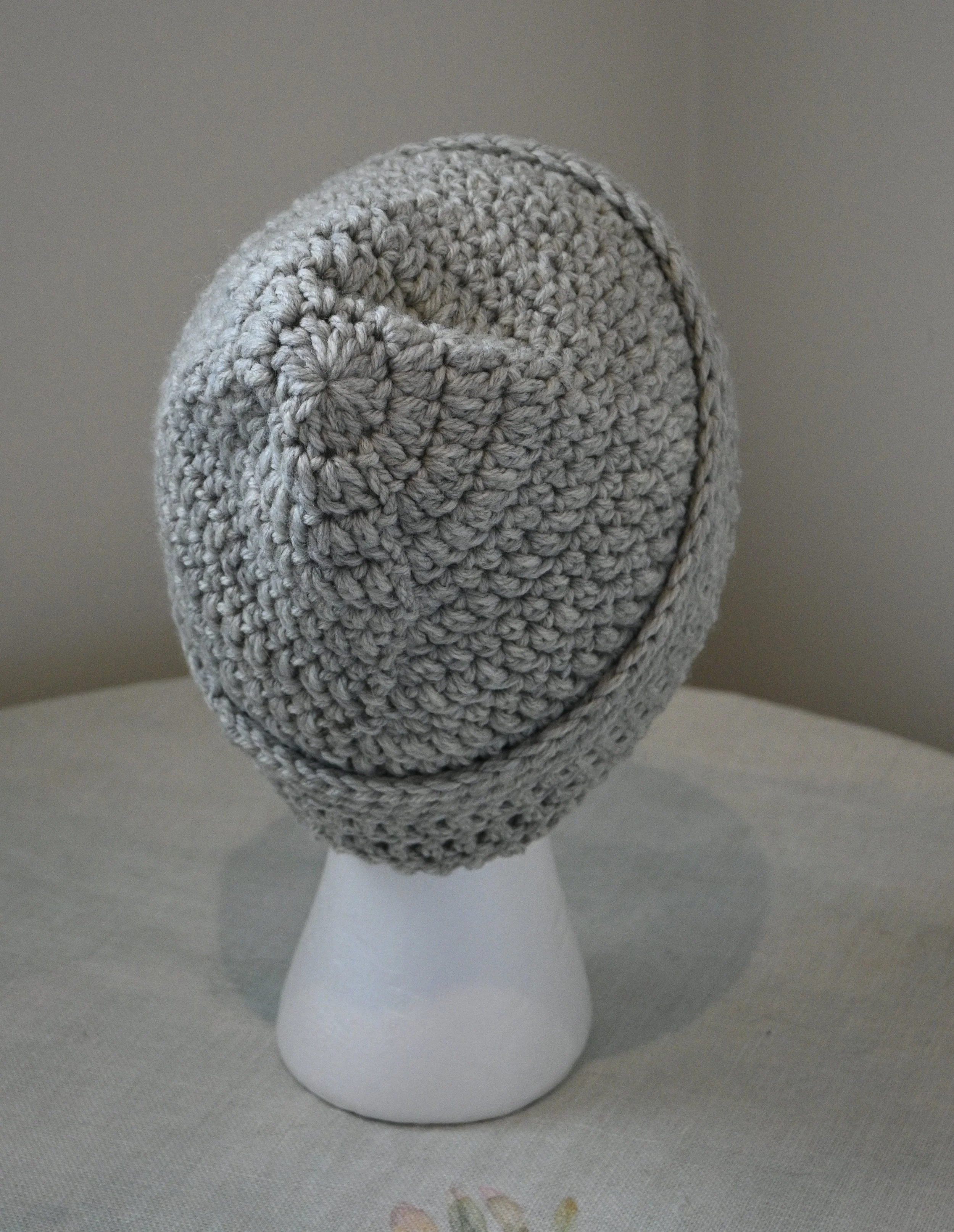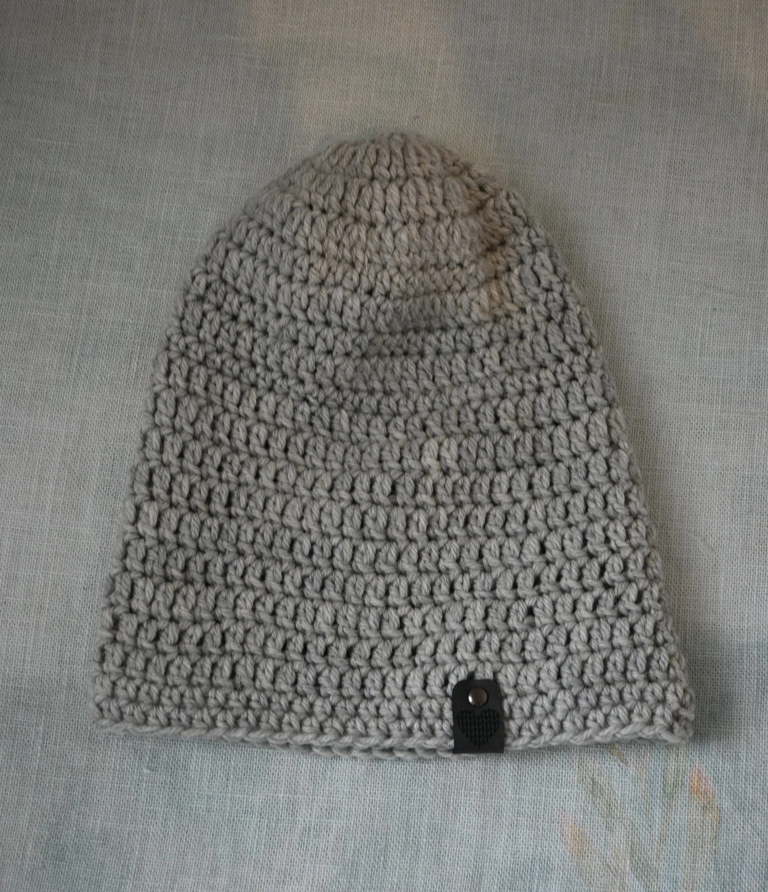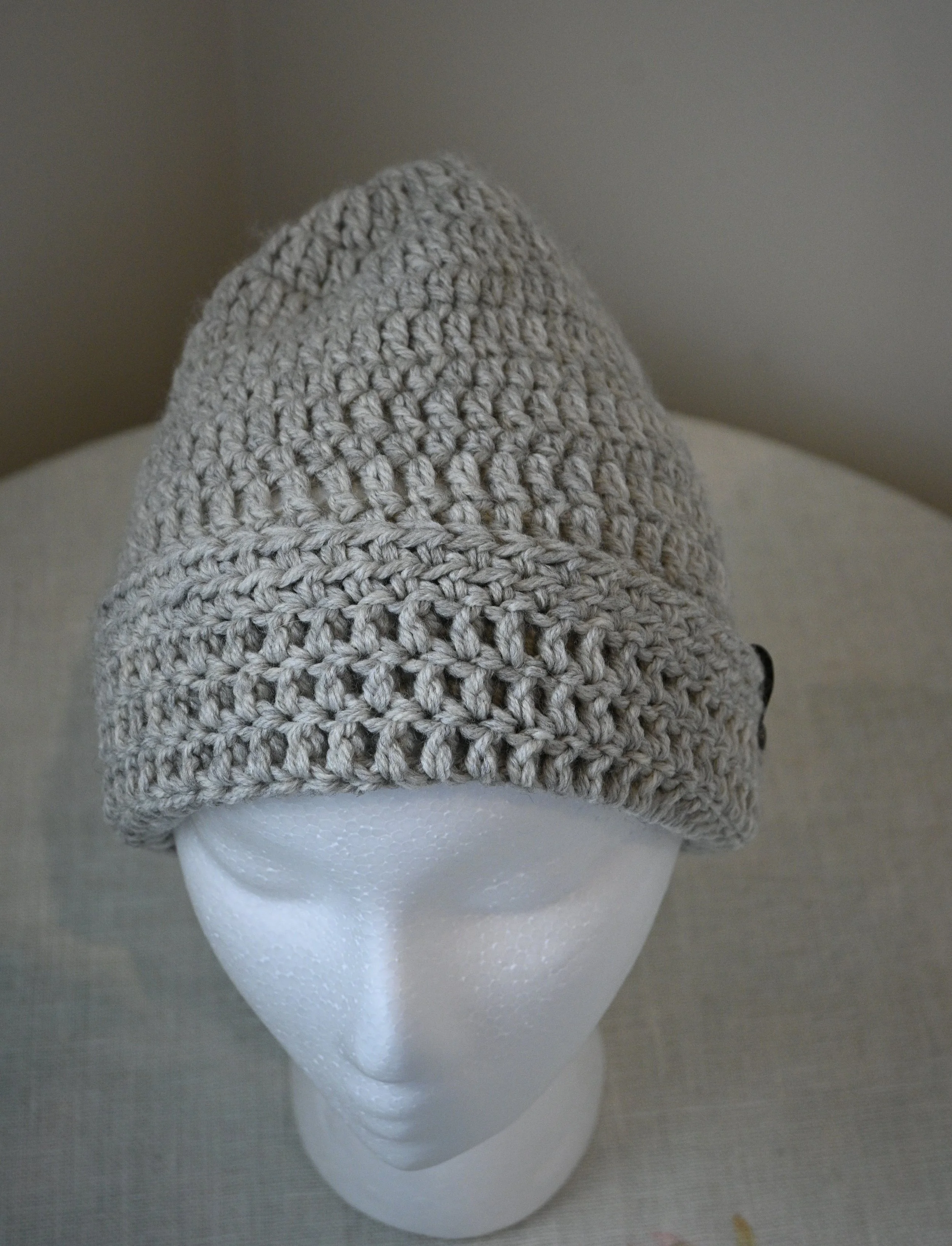 Crochet beanie of medium size; warm and snug fit; pure wool