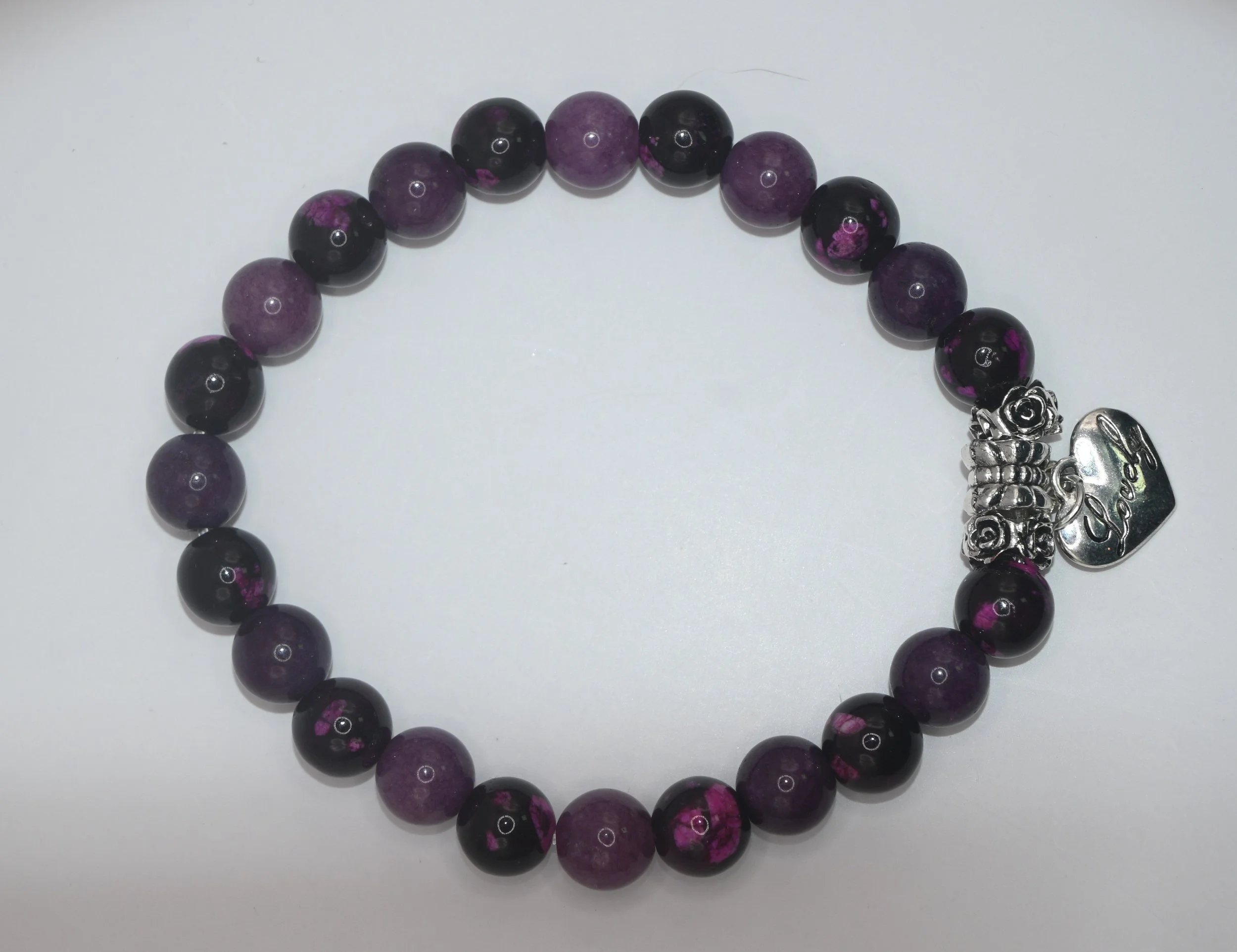 Materials – dark red jasper natural stone 6mm beads, purple blue round stone 6mm beads with fixtures