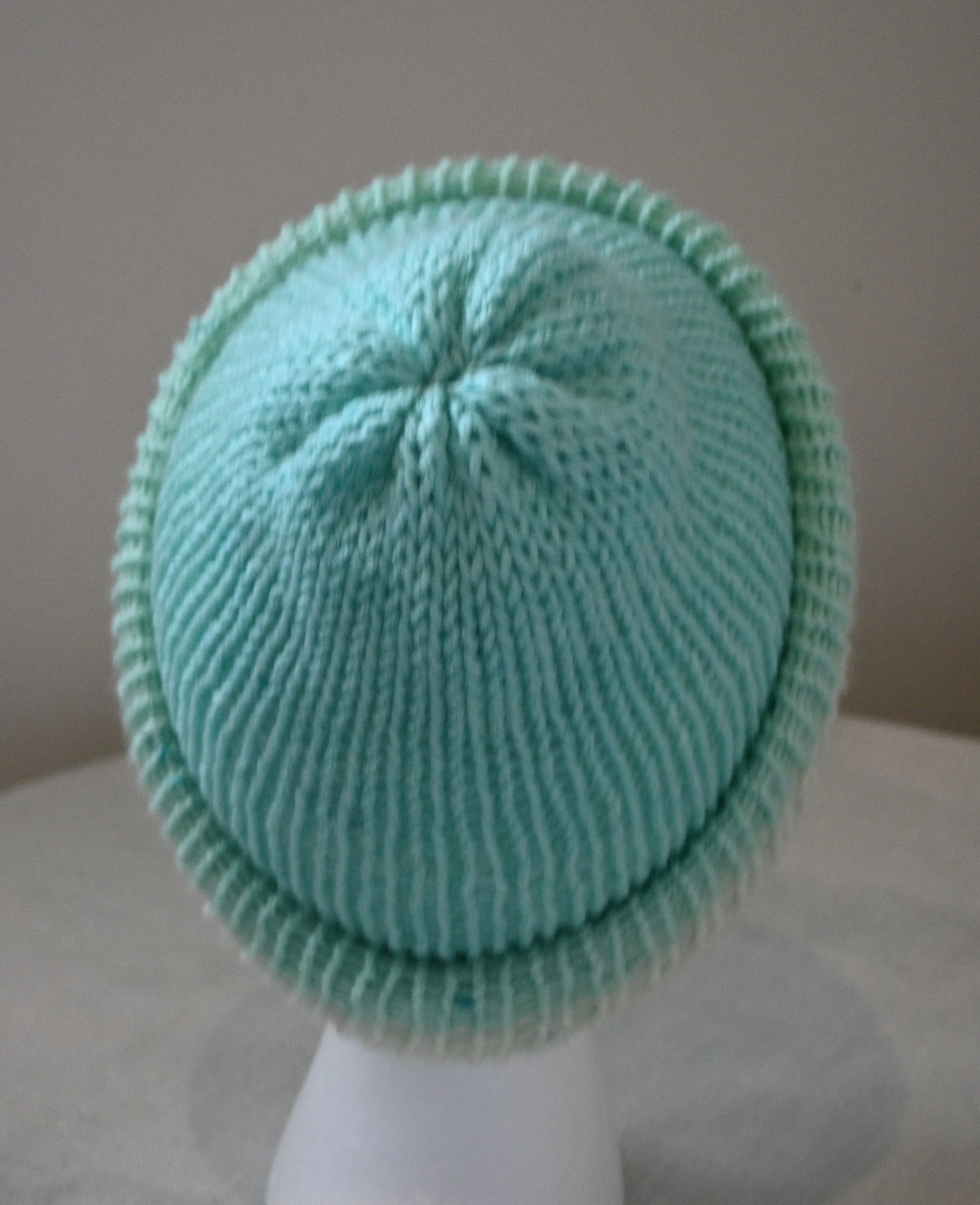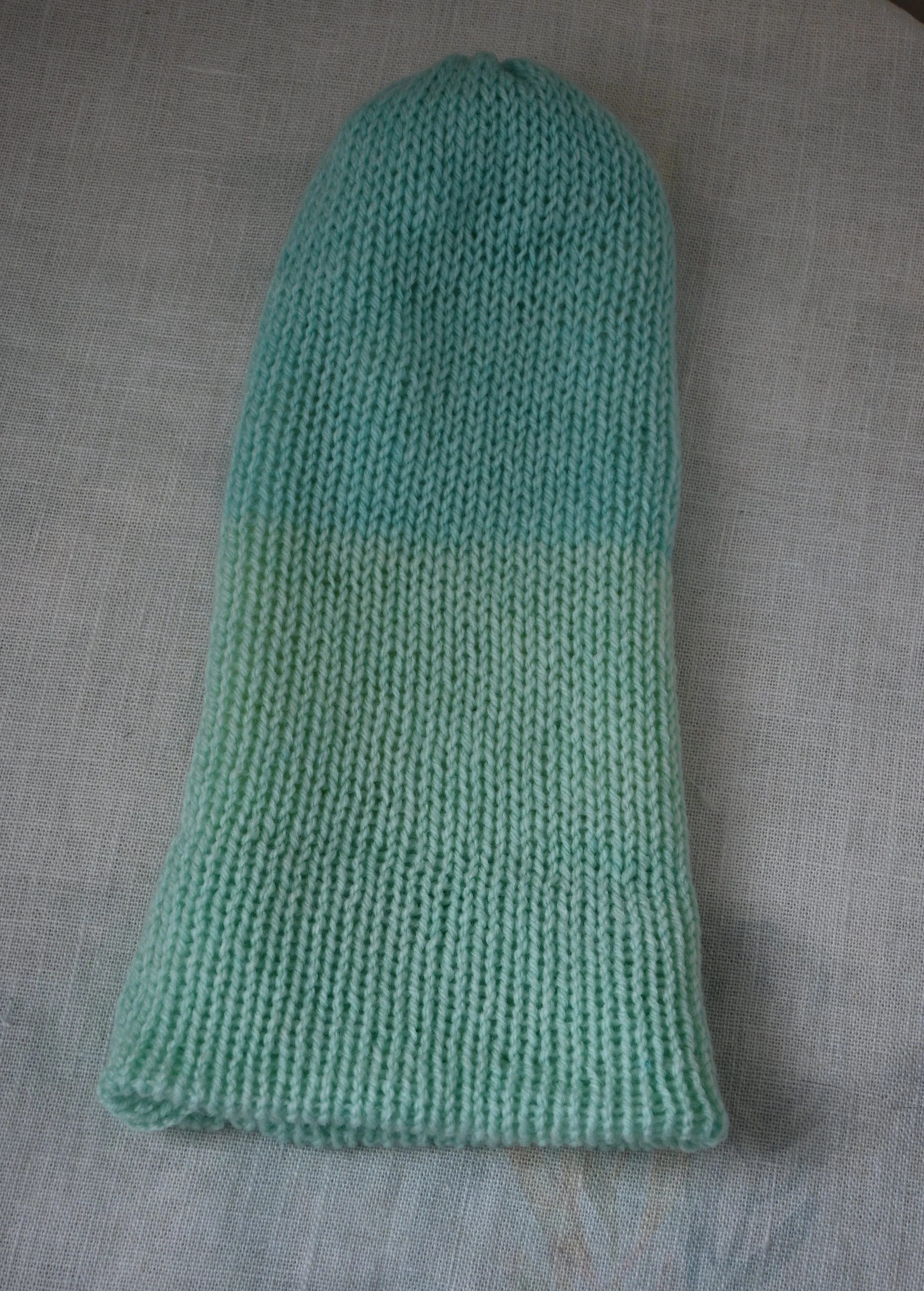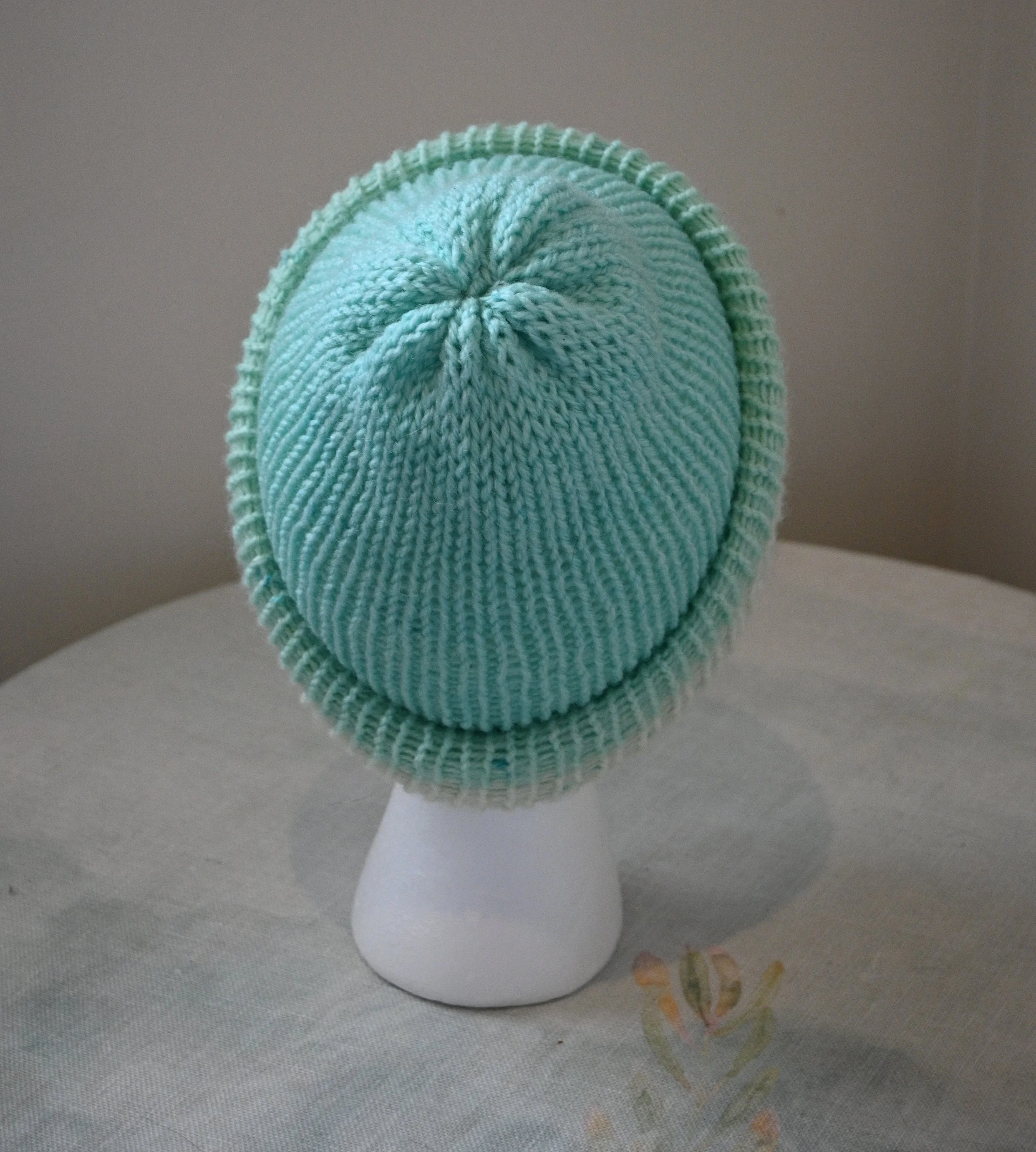 Double sided thick beanie with grades of mint green and cream; can be worn reversible; large brim which can be doubled over for extra warmth; overall size is on the large size so extra warm for your ears